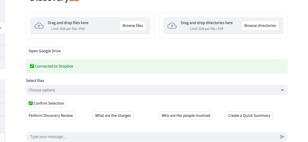 Dropbox is now connected, and your files can be used in DiscoveryEZ.